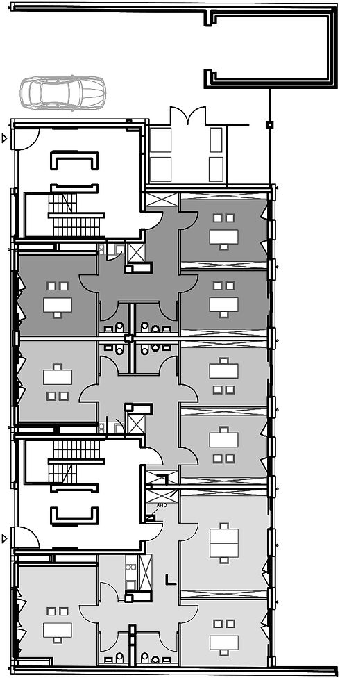 Die Büroflächen im Erdgeschoss an der Bonner Straße präsentieren sich mitten im Leben und bieten effizient durchdachte Grundrisse mit Flächengrößen von 106 m² bis zu 342 m².